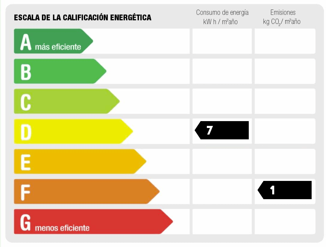 - Consumo de energía (kwh/m2 año): 7.