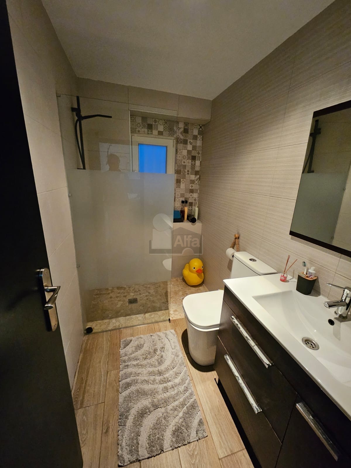 1 baño moderno, reformado con materiales de alta calidad y un diseño actual.