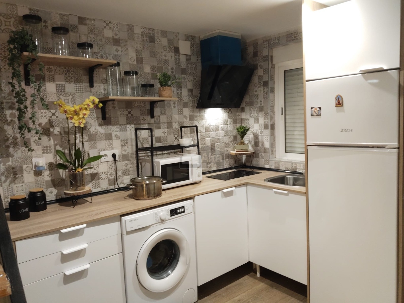 Cocina y salón con una distribución pensada para aprovechar al máximo el espacio y la luz natural.