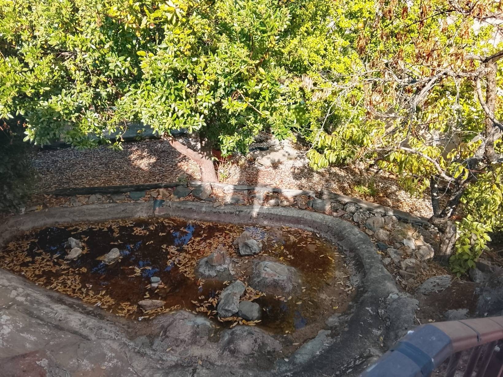 Estanque artesanal con fuente y bomba automática
