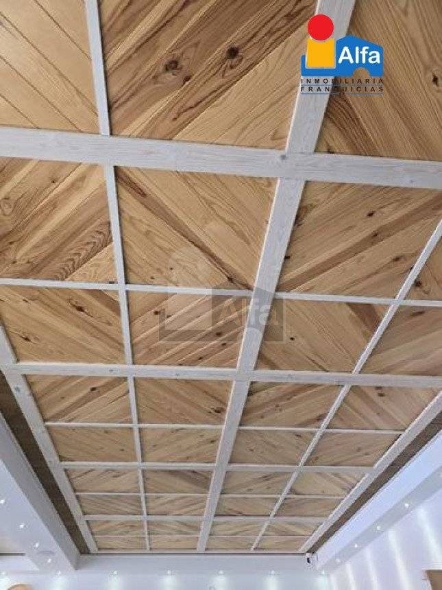 Techo de madera natural hecho a medida, que aporta carácter y elegancia.